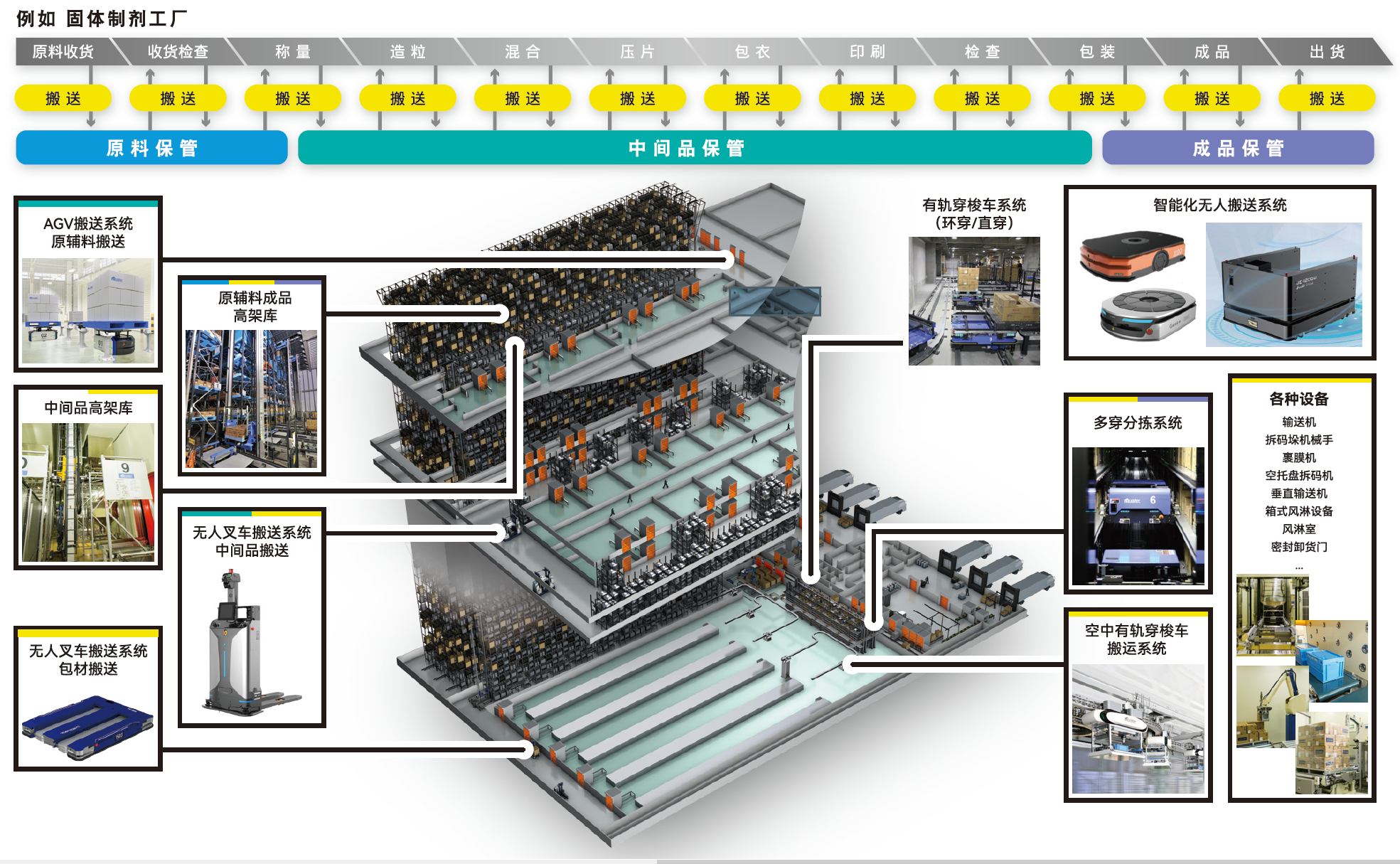 制药厂引入物流自动化解决方案的效果 · 通过节省劳动力,改善职业安全和健康来提高生产力 · 交叉污染预防和可追溯性实现国际标准 · 通过消除人为错误提高生产质量并提高安全性 |